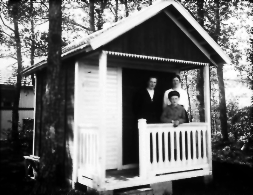 Elsa Jörgensson och Anna Tengstrand och Annas son Erik (1914-37). Det är hans lekstuga.