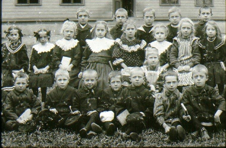 Rantens småskola 1901: Lärarinna Maria Larsson. Detalj av Diabild nr: A-1188.