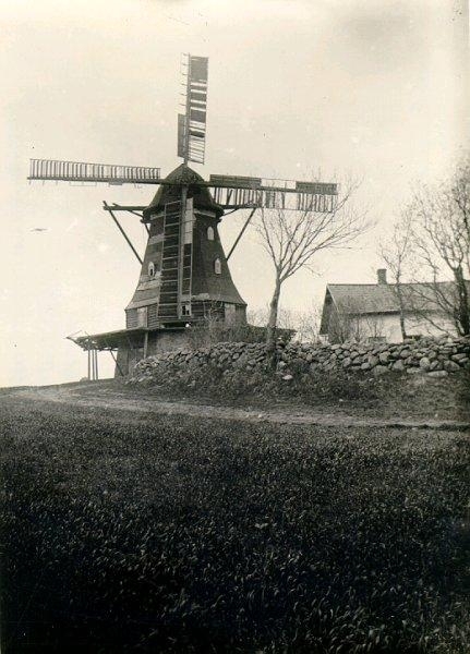 Gamla väderkvarnen på Viken. En av Falbygdens sista väderkvarnar. Hollandstyp. Raserad 1916.