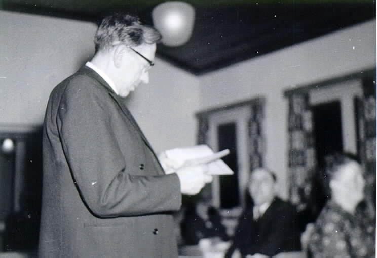 Hugo Sköld berättar på Stenstorps kyrkliga syförenings 50-årsjubileum.