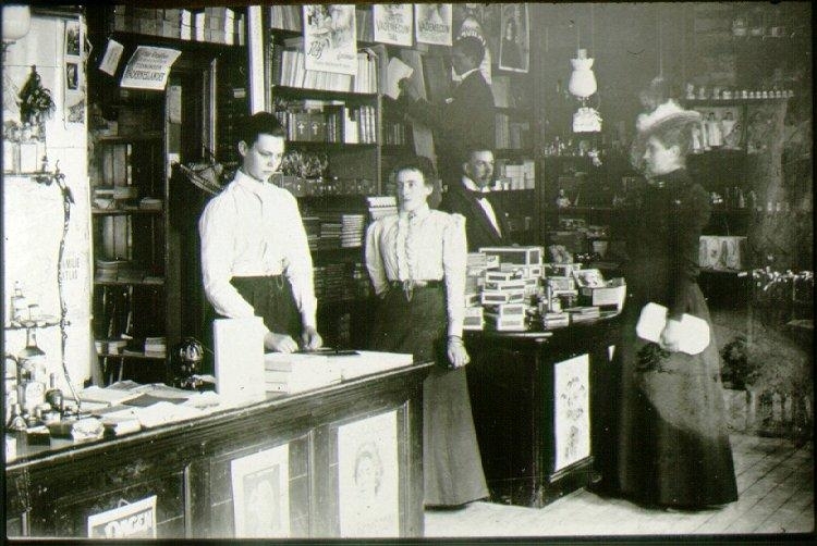 Kv. Rådmannen, Storgatan 5, Lindgrens bokhandel. Fr. v. Alice eller Maja, nr. 2 Anna Svedmark.
