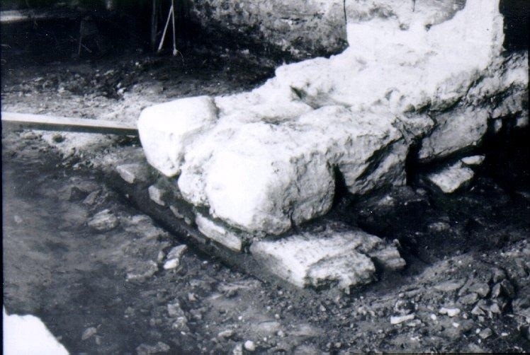S:t Olofs kyrka. Undersökningen 1950-62. Detaljbild från golv och murundersökningen.