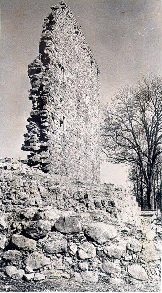Ruinen av biskopsborgen i Husaby. Renoverad 1970-73.