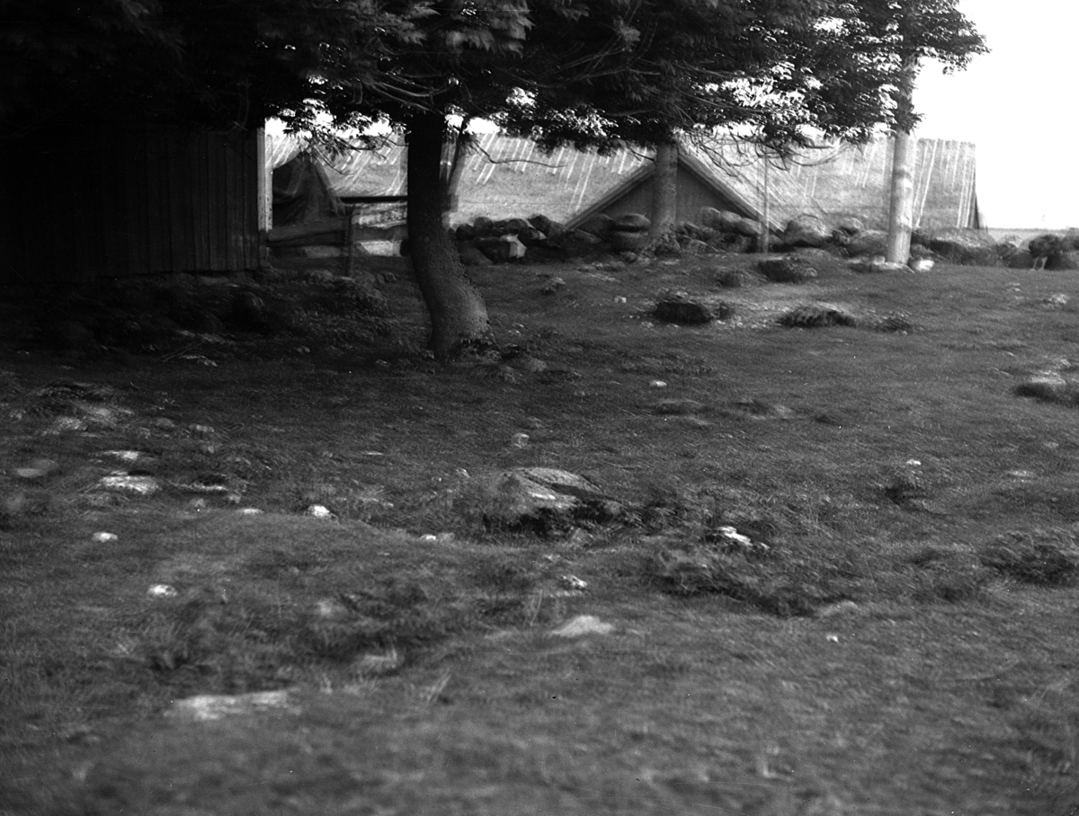 Smeby kyrkoplats. Trädet i mitten stod ungefär mitt i ruinen. Smeby kyrka låg sydost om Ålleberg.