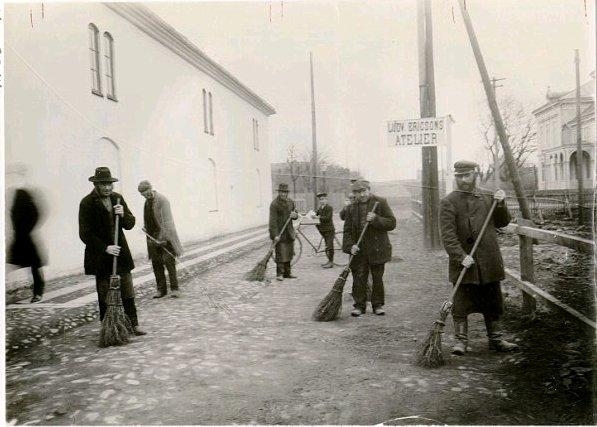 Kv. Guldsmeden, Dotorpsgat. 1. Det gamla "Soparelaget" utanför "Jansonska fastigheten", vilket revs 1957.