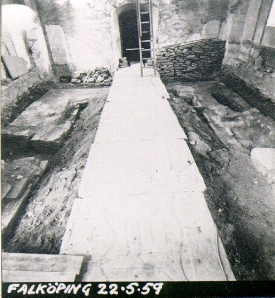 S:t Olofs kyrka. Restaureringen 1958-1961. Romanska torngrunden blottad. Från öster.