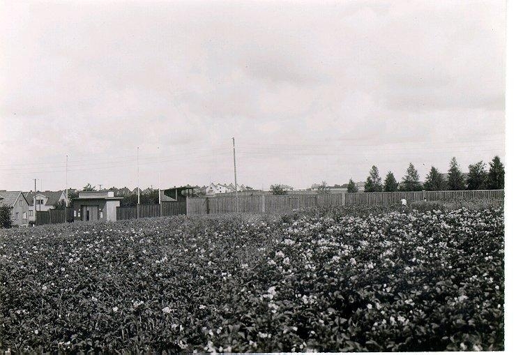 Odenplan. Idrottsplatsen. Idrottsplatsen med småstugeområdet. Staden tog 1942 av Föreningen för idrottens främjande över förvaltningen av idrottsplatsen.