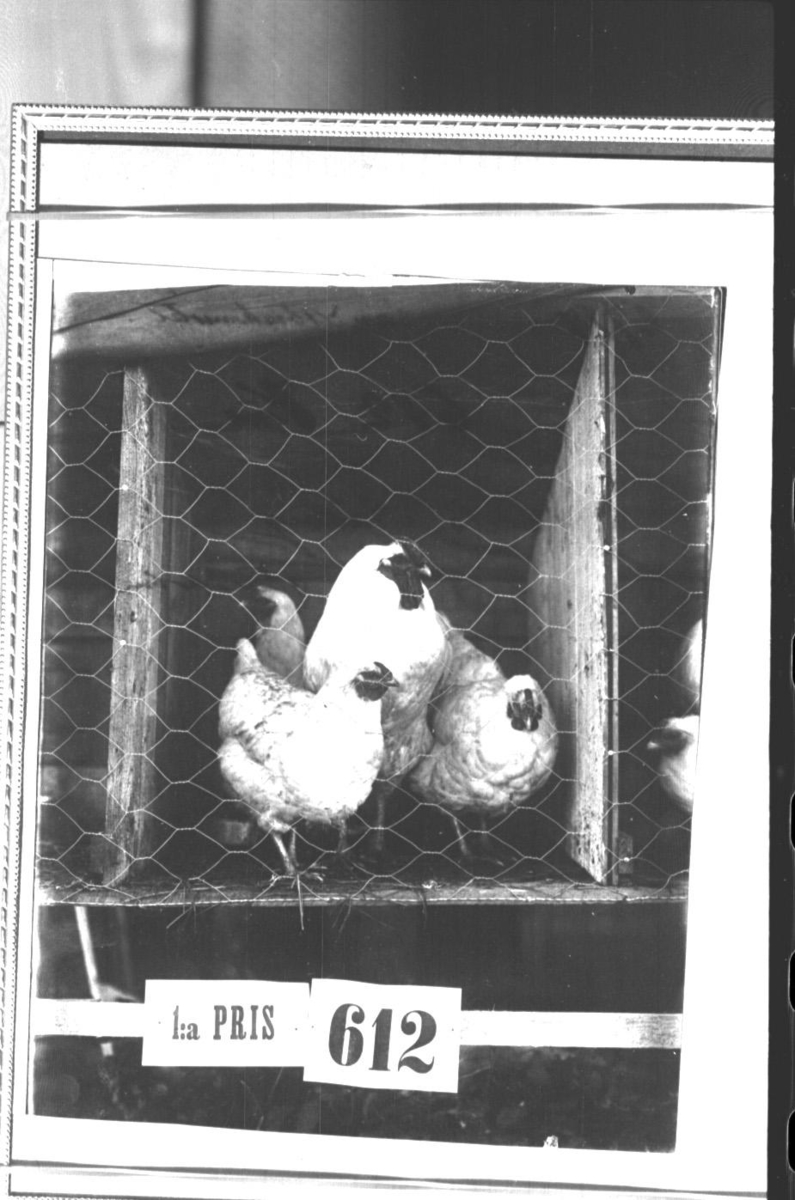 Tre hönor som vunnit 1:a pris. Lantbruksutställningen.