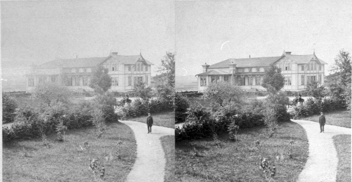 Titel: Mössebergs bad, det första badhuset (stereofoto).