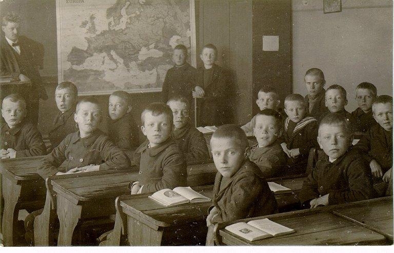 Folkskolan. Överlärare Hilding Svensson med skolklass.