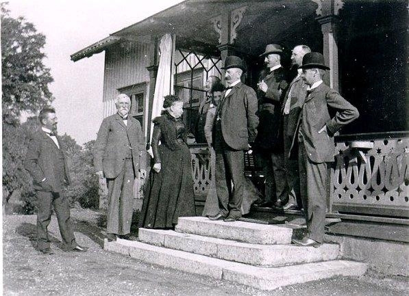 Makarna Stenbeck med några av sina söner, dottern Ingeborg och mågen Nils David Lychow. De hade åtta söner och en dotter. Dottern Ingeborg född 1872 på Gudhems Kungsgård, gift med länsagronom Nils David Lychow. Farmor till Ann Mari Brissman, Dimboholm. Foto fr. Åkatorp i slutet av 1890-talet.