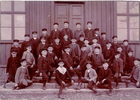 Läroverket. Skolklass 1 och 2 i Falköpings allmänna läroverk, vårterminen 1900. Osk. Johansson, Esk. Johansson, Har. Vestlin, Ejn. Ljungqvist, Joh. Asplund, Gust. Högberg, Arv. Edlund, Iv. Leijon, Vilh. Bergdahl, Ragn. Fahlström, Arv. Palmqvist, John Eriksson, Rob. Larsson, Folke Kronvall, Rob. Vallenberg, Er. Vennberg, Gust. Bergström, Ejn. Svensson, Adr. Andersson, Olof Aurell, Birger Bengtsson, Gust. Nylén, Iv. Janzon, Ad. Högberg, An. Ekblad, Folke Appelin, Karl Lundh, Hj. Ahlberg, Erik Bohlin, Ernst Haglund, Karl Ackerman, Hild. Johnsson, Ragn. Ahlberg, Er. Sandberg, Bele Silfverhjelm.