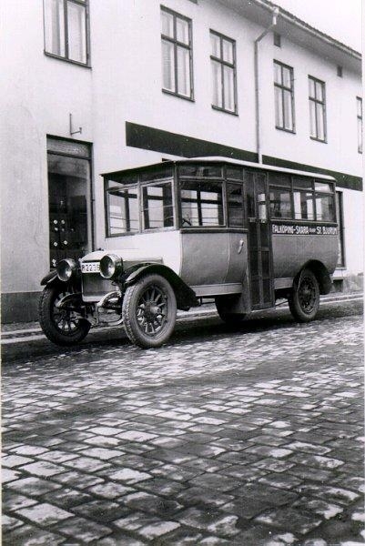 Trafikbussen Falköping - Skara över st. Bjurum. Omkr. 1925.