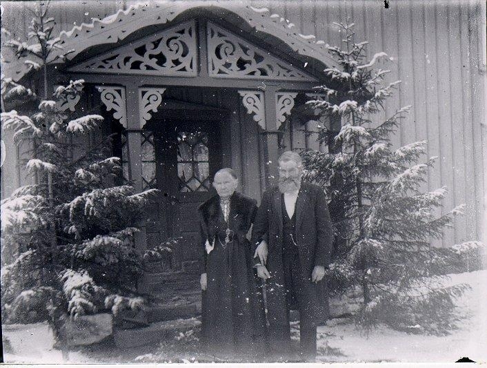 Hemmansägare August Adamsson född 1847 och hans hustru Maria född 1849. Fotot taget på makarnas guldbröllopsdag.
