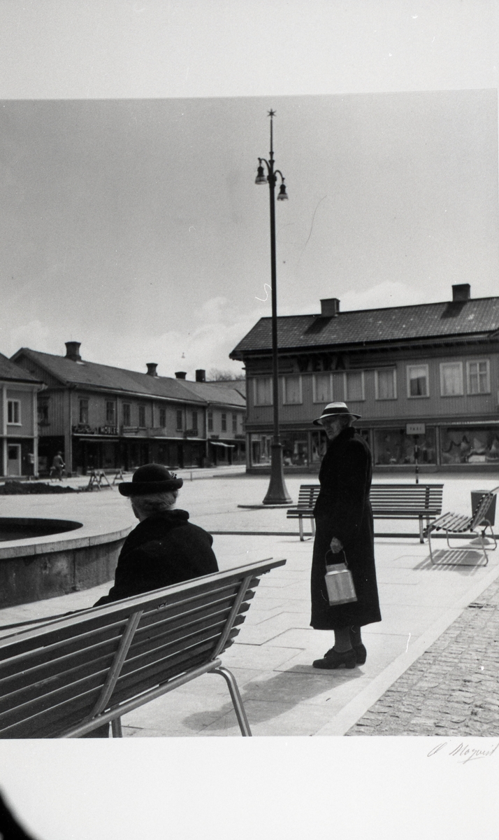 "En pratstund på torget". Från utställningen "Falköping i bild" 1952.