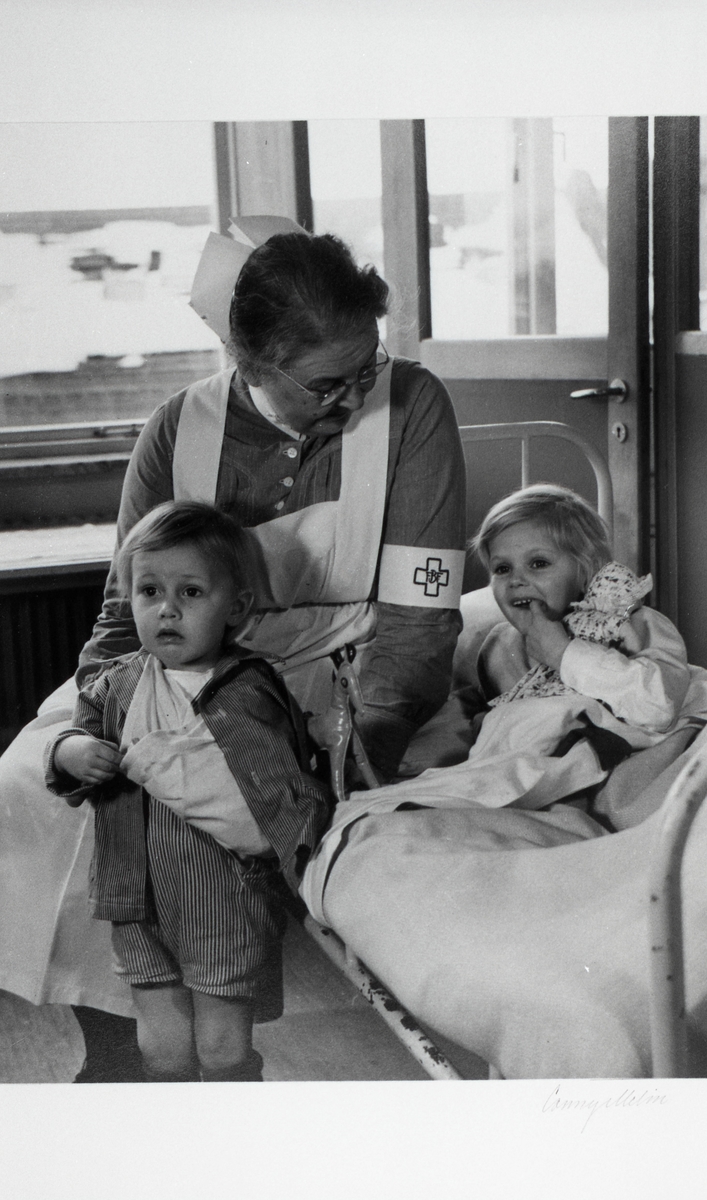 "Syster Hanna och skyddslingarna" (lasarettet). Från utställningen "Falköping i bild" 1952.
