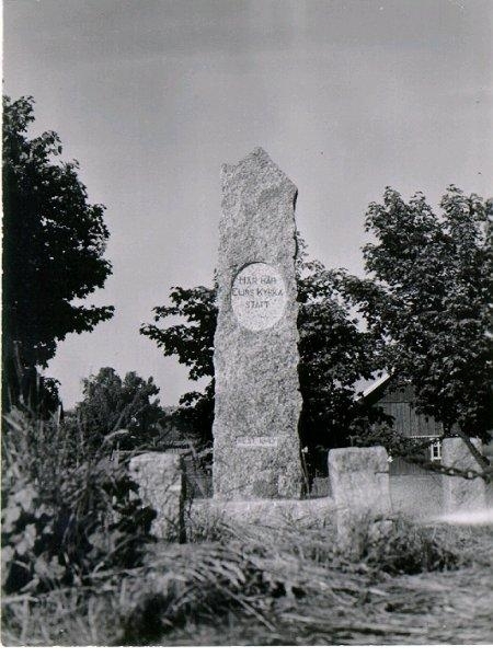 Minnessten vid Elins kyrkoplats. Stenen rest 1943. Text på stenen: Här har Elins kyrka stått. Sägnen säger att S:ta Elin mördades på väg till Göteve el. Götene. (Helgon S:t Elin eller Helena).