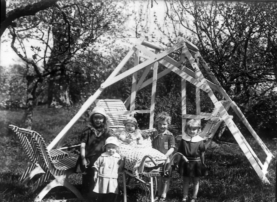 Komminister Larssons barn Karin, Gunvor, Ingrid (i vagnen), Gunnar, Brita.
