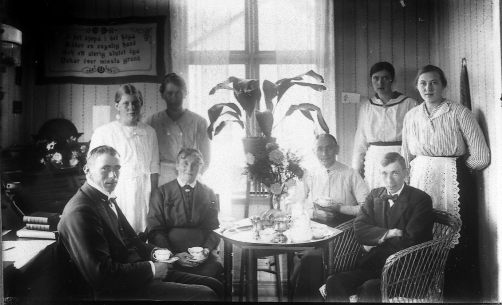 "Filialen" Ömans affär på Heden. Sittande Ivar Andersson, Anna Lovisa Gustafsdtr, Lovisa Andersdtr Skumme, Harlald Andersson. Stående: Gertrud och Evelina Andersson, Hildur och Berta Johansson Heden.