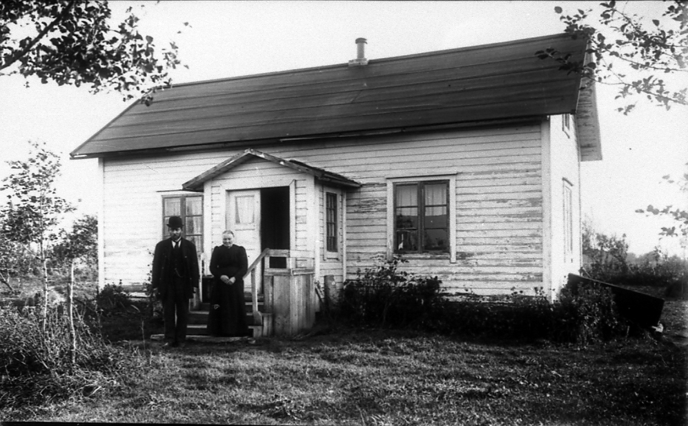 Smedstorp i Göteve 1919. F.d. soldaten (1863-95) för 986 Skaraborgs regemente Anders Johan Ström och hustru Klara Johansdtr.