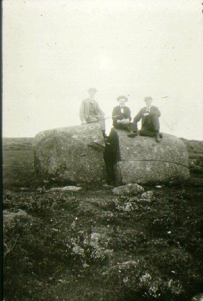 På Näregårdens ägor. Fr.v. Evald Hägertz, frisörmästare Gustav Johansson, Allan Bergström, 200-300 kor gick och betade, det var bara ljung och enris.