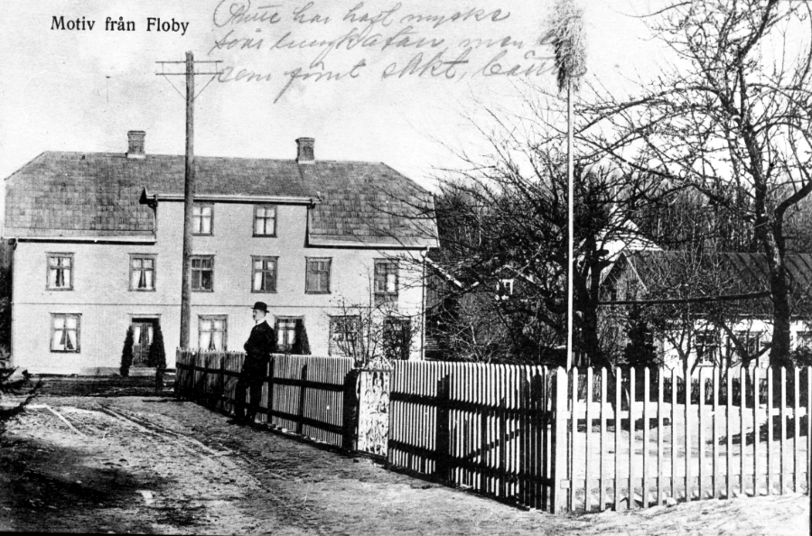 Artur vid mormors trädgård, Wallins och Wilanders i bakgrunden.