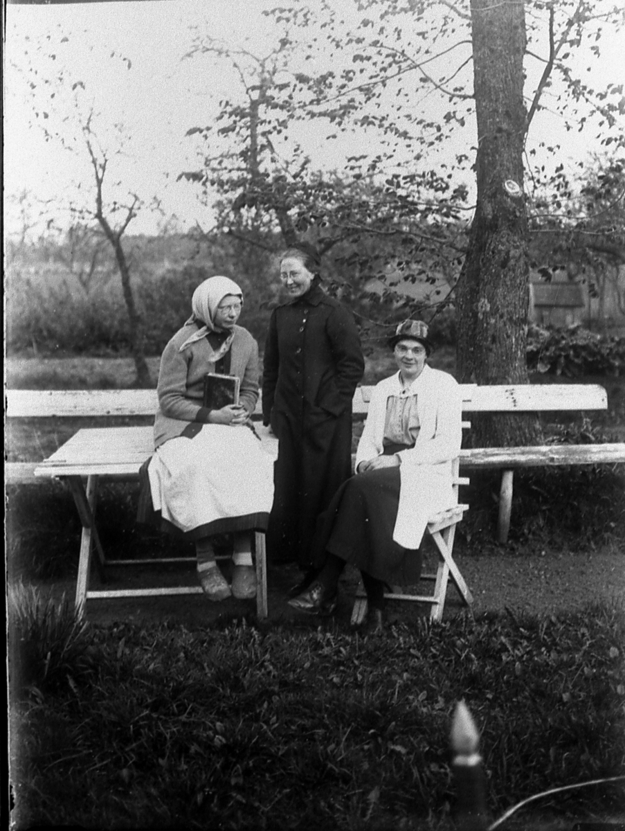 På Veken. Berta på Veken, en evangelist ("bibelkvinna", ev. "syster Karin") och Berta Johansson Karlsgården.