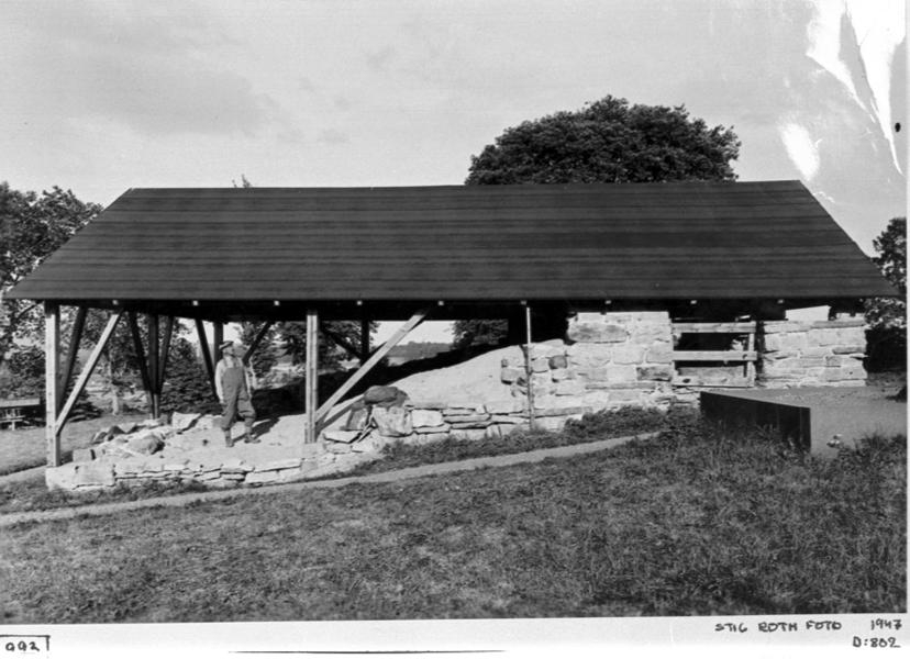 Abbedissans bostad fr.v. sedan källaren ifyllts. Assistent Hedén står t.v.