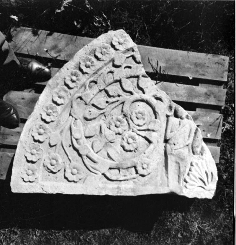 Del av utsirad sten från Gudhems klosterruin.