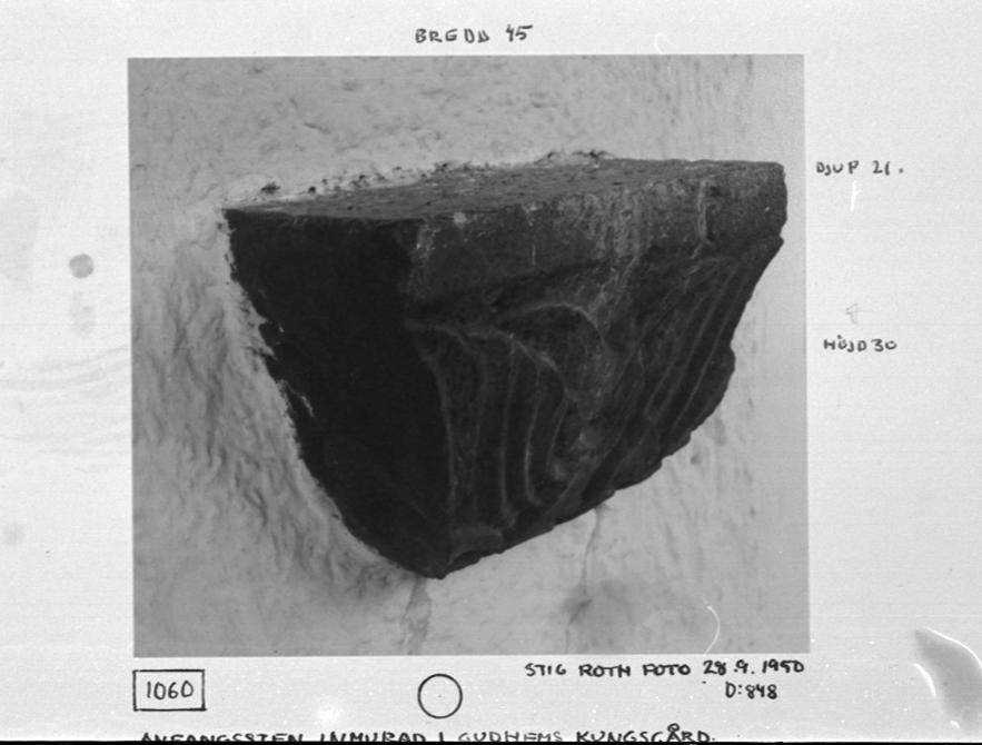 Anfangssten. Inmurad av Gudhems kungsgård.