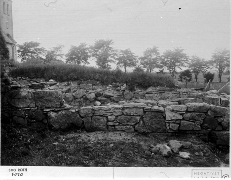 Klostret. Norra längan. Refektoriets västra innervägg. Foto mot v.