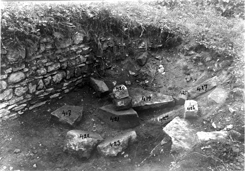 Arkiteturdelar. Huggsten. Södra korsgången.