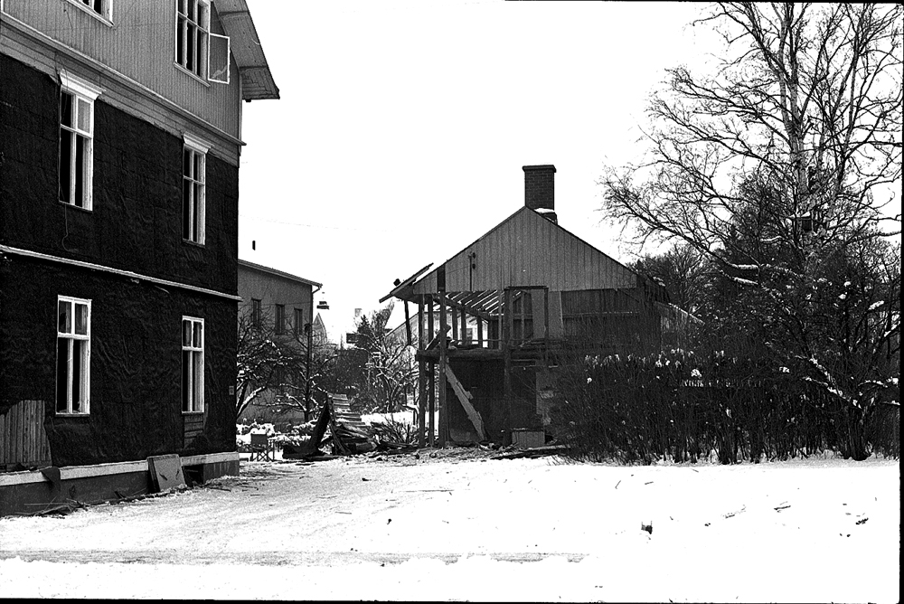 Kv. Byggmästaren, tomten nr. 21. Parkgatan 30 - Frejagatan 11, rivning 1969. Från s.
