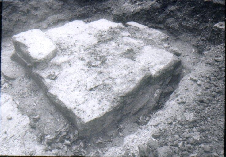 S:t Olofs kyrka. Undersökningen 1950-62. Fundament till strävbåge.