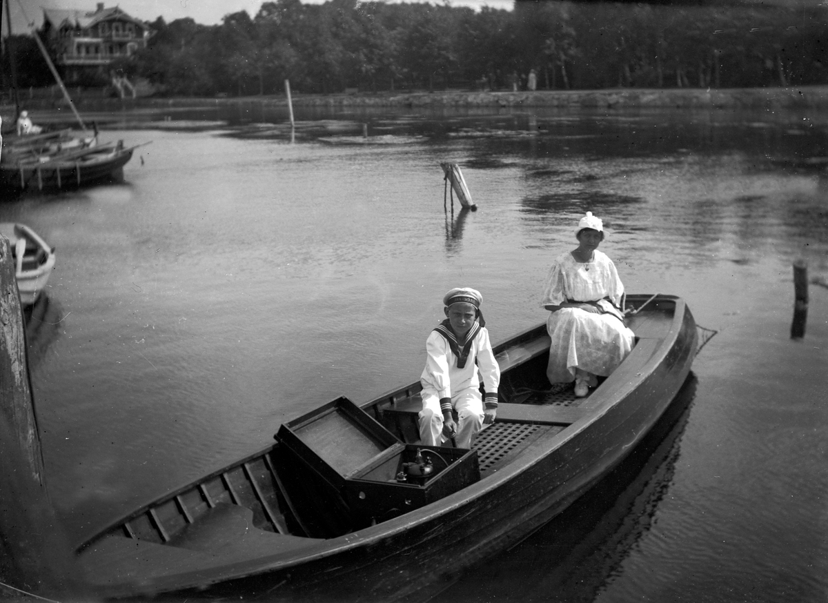 Pelle, Greta och jag i motorbåten.