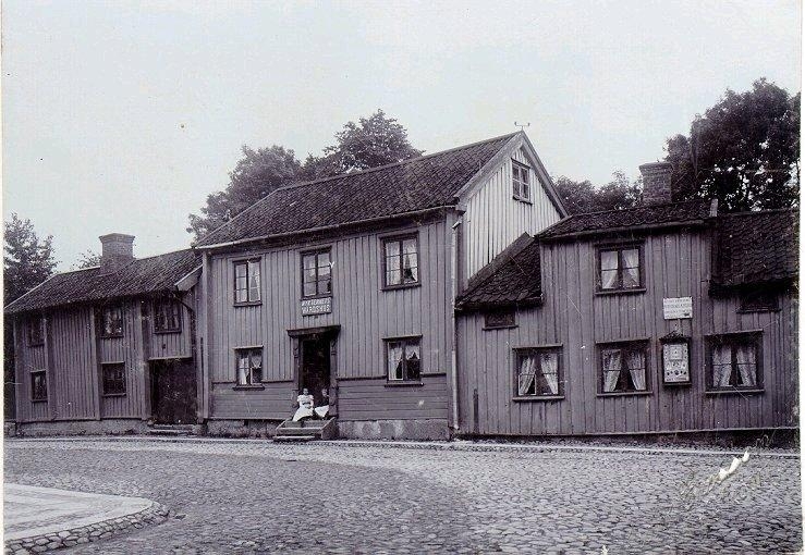 Mörkens krog. Det mindre huset till vänster var stadstjänare Thorsells hus, tidigare tullhus. Fru Charlotta Mörks (svärmoder till handl. Emil Kilander) fastighet Storgatan 11-13, där nu handl. Kilanders hus är uppbyggt.