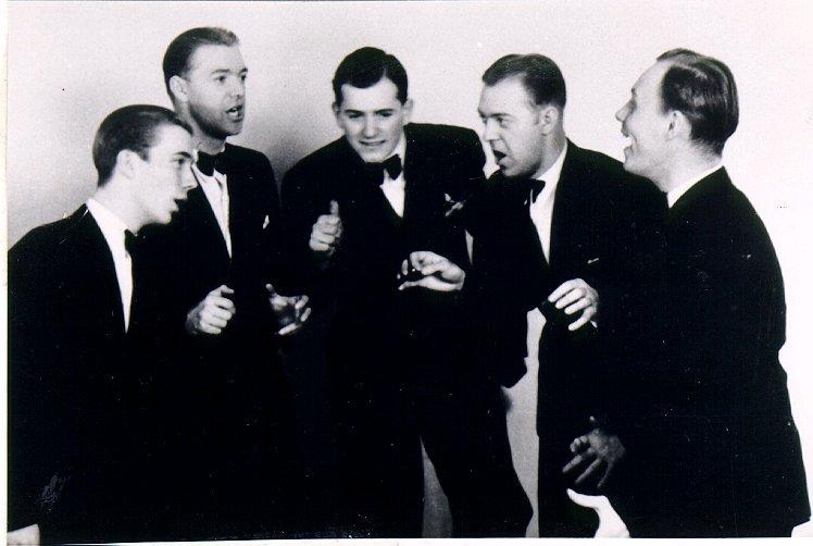 Dansband."Nasko Singers" slutet av 1930-talet. Från vänster Stig Carlsson, Curt Augustsson, Anders Heribertz, Gunnar Augustsson och Allan Winberg. Foto Torin.