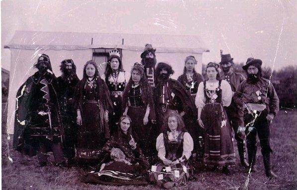 "Zigenarne" vid Planteringsförbundets sommarfest 4 Juli 1897. Hövding: Baron Knut Åkerhielm. Hövdingens maka: Fröken Zibell hos apotekare Rignell. Hedvig Zibell, Ellen Uggla, Nanny Janzon, Emmy Jägerfeldt, Beda Vestermark, Karin Johansson, Ruth Bergqvist, friherre Knut Åkerhielm, Sven Blomqvist, Arvid Jakobson, Gunnar Nosslin, Knut Nilsson, Gustaf Anderson.