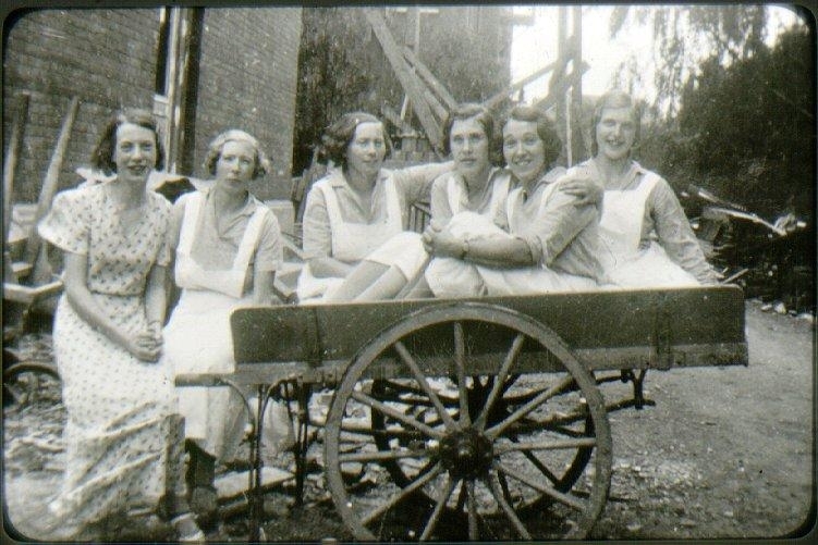 Lasarettet, kökspersonal 1936-38. Från vänster: 1. Inga Borg, 2. Hildur Kilander, 3. Stina Olsson, 4. Stina, 5. Greta Johansson.