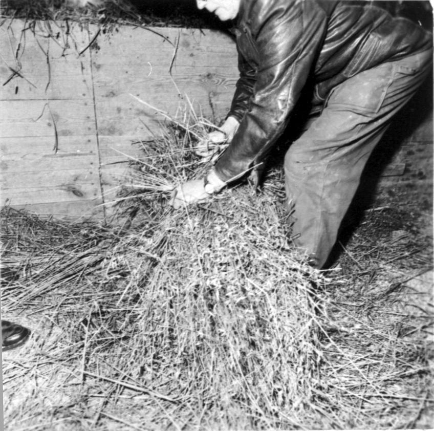 Präglatröskning hos lantbrukare Frits Karlsson. Tröskaren är Emil Hermansson eller Ture Scherman.