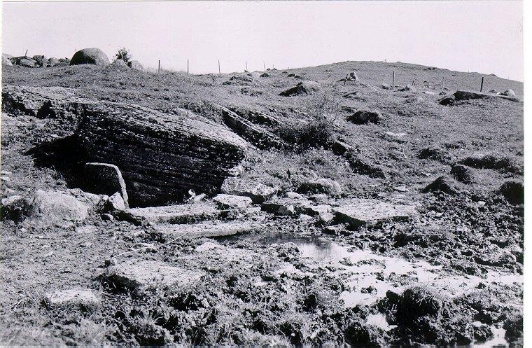 Offerkällan "Löve-käll" eller St. Livers källa. Redbergagården eller Hässlet. Stensatt, stort stenblock i ena änden.