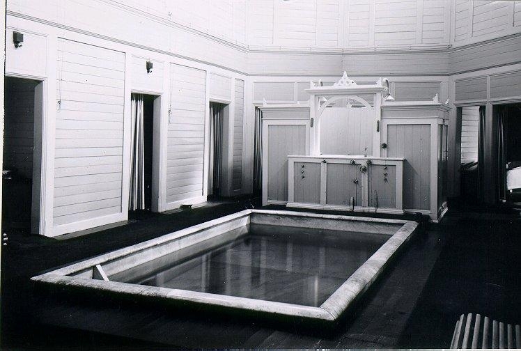 Mössebergs bad. Gamla Badhuset. Badbassängen i I:a klass herrbadet.