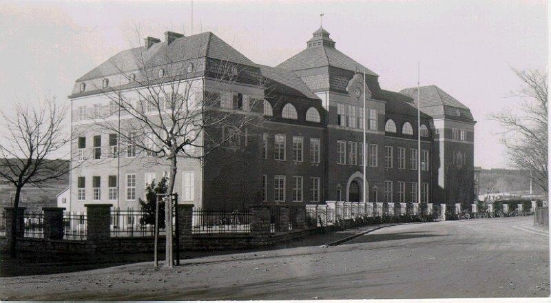 Kv. Verdandi. Läroverket på 1940-talet. Tillbyggt t.v. i bild.