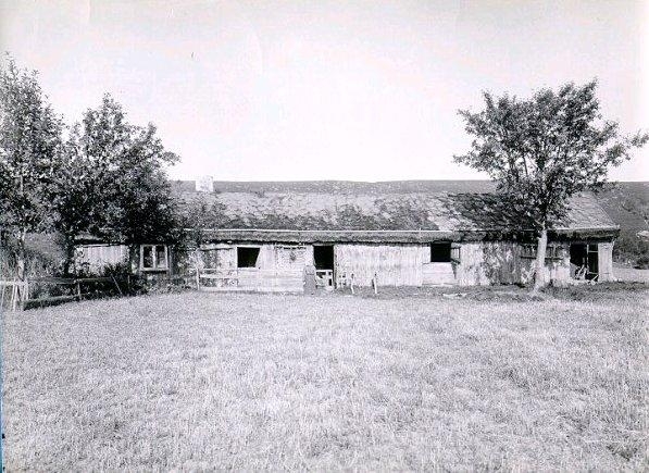 "Sköttes", en gammal bondgård, sammanbyggd med ladugård. Över taket syns det kala Gerumsberget.