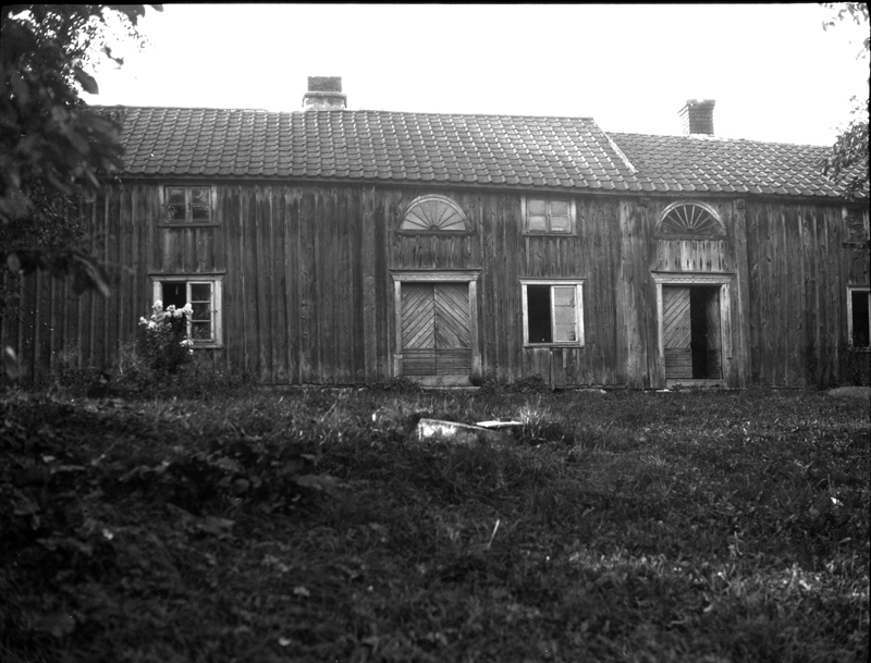 Manbyggnadens länga i två våningar, dubbla ingångar under halvcirkelrunda fönster. Ytterdörrarna har klätts m. profilerade bräder, och har portalliknande omfattning.