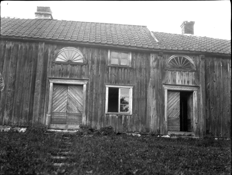 Manbyggnadens länga i två våningar, dubbla ingångar under halvcirkelrunda fönster. Ytterdörrarna har klätts m. profilerade bräder, och har portalliknande omfattning.