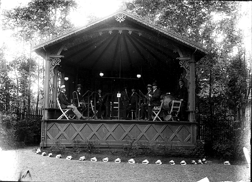 Orkester vid paviljong i Rantens hotellträdgård.