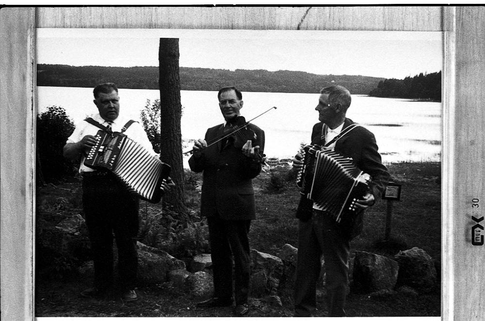 John Karlsson Axel Brenklert o Gunnar Karlsson spelar vid sjön Stråken.