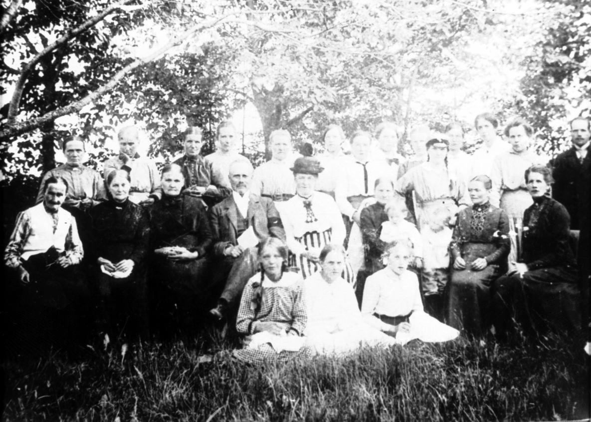 Vårkumla syförening med kyrkoherdefamiljen Bjerkander samlad i Fröjeredsled.
