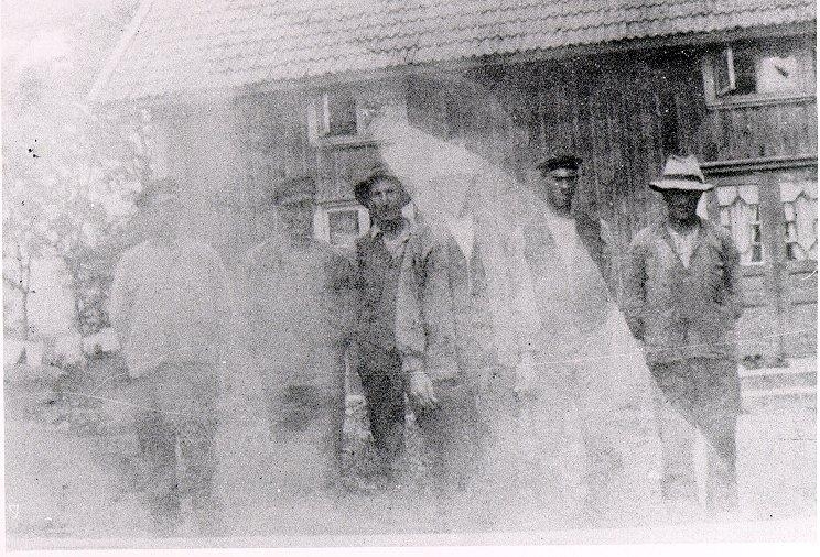 De sex fast anställda i jordbruket vid Rogestorps gård. Från vänster: Nils Jonsson, Arvid Jansson, Werner Palmqvist, Erik "Jansson" Fransson, Anton Karlsson och Erik Ferm.